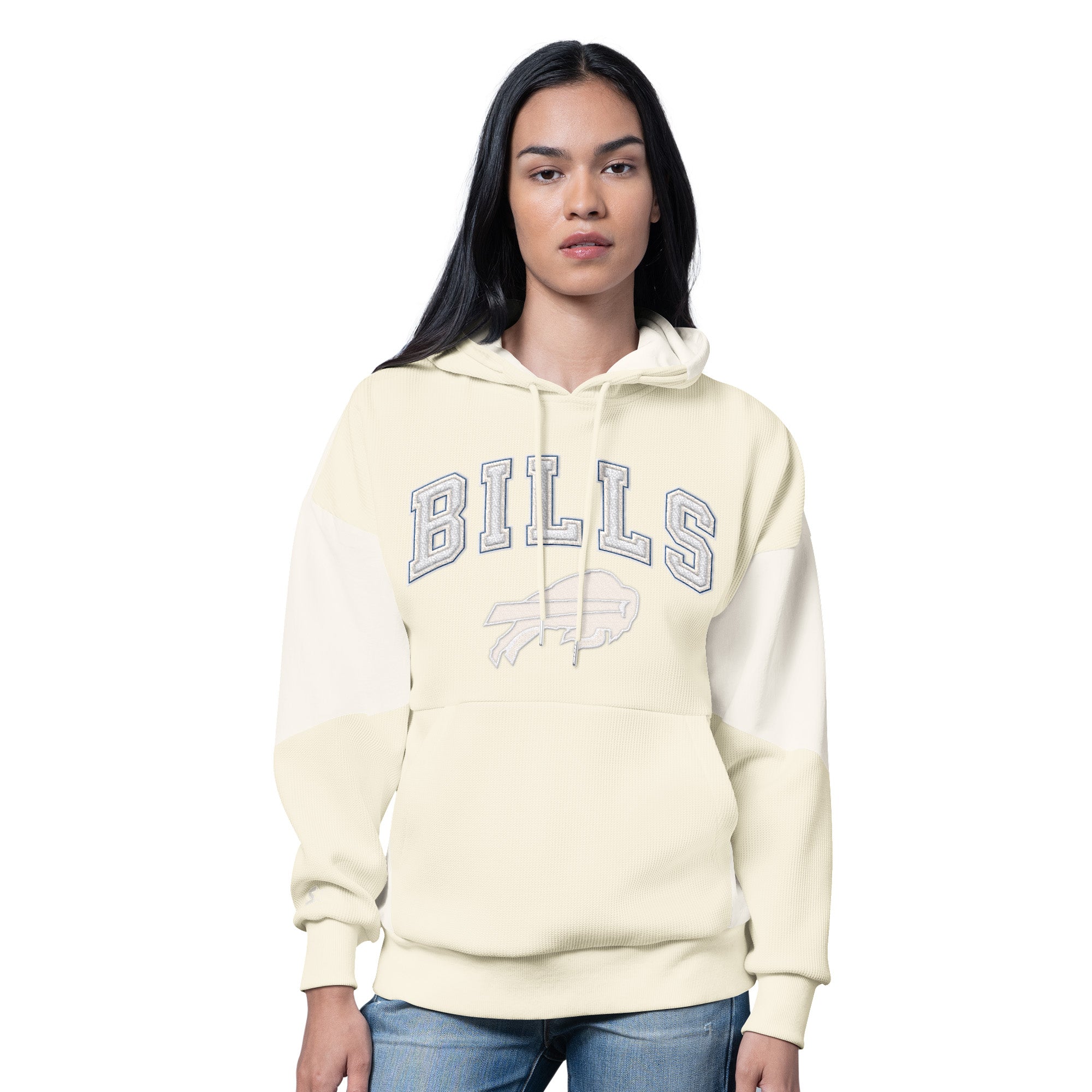 Starter Buffalo Bills Off White Colorblocking Waffle Knit Hoodie