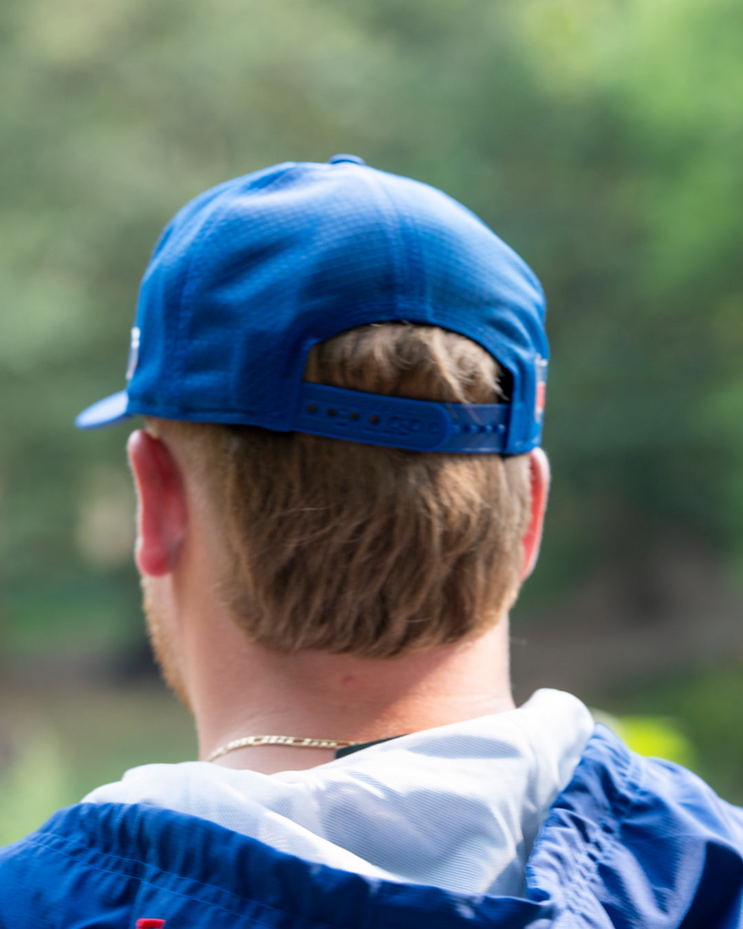 New Era Buffalo Bills 2025 Sideline Hot Weather Royal Adjustable Runner's Cap