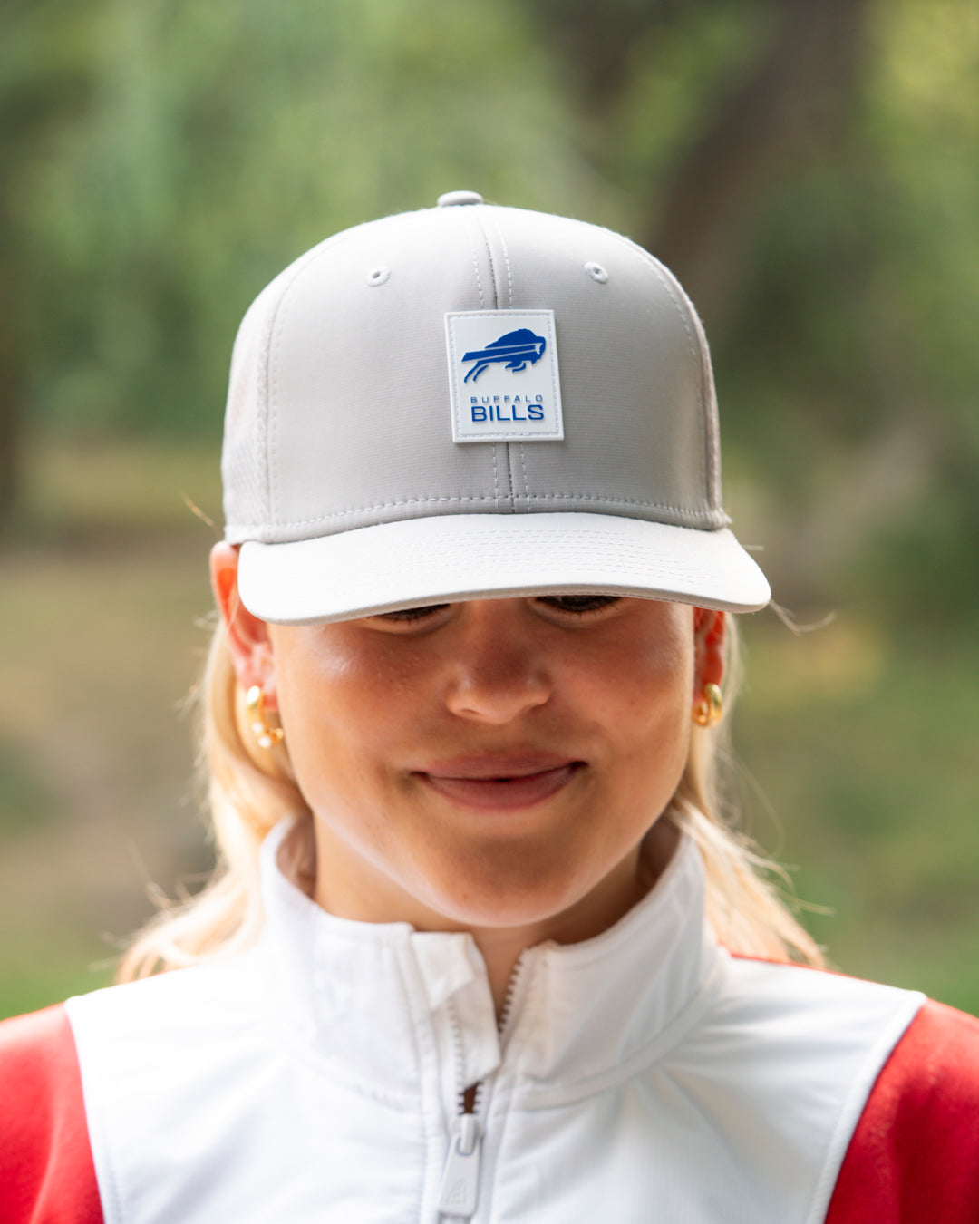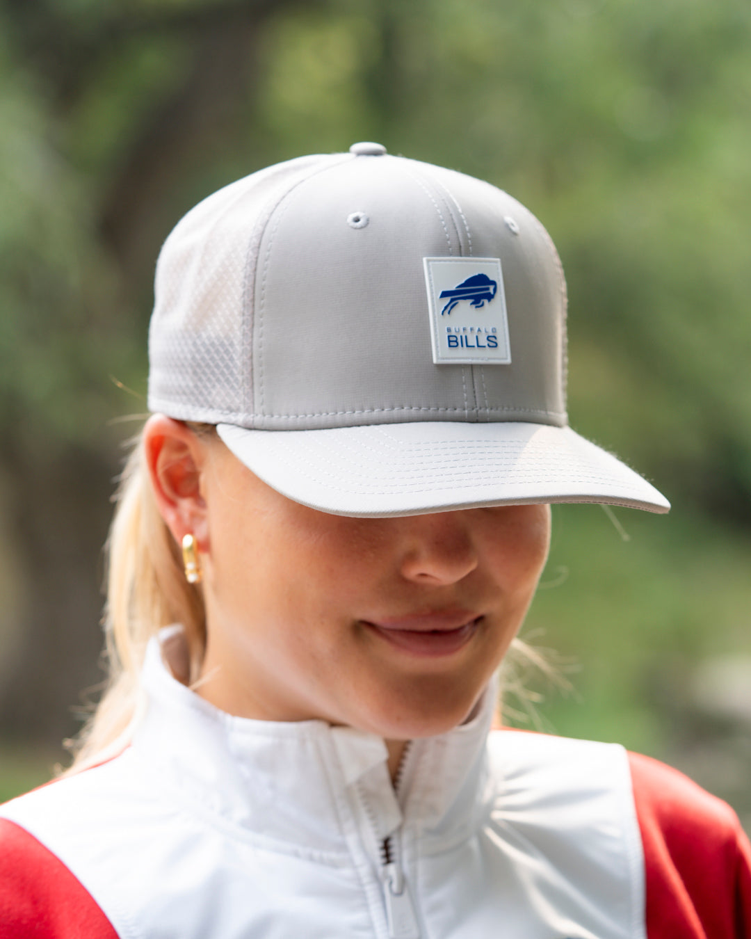 New Era 9FORTY Buffalo Bills 2025 Sideline Hot Weather Primary Logo Gray M-Crown