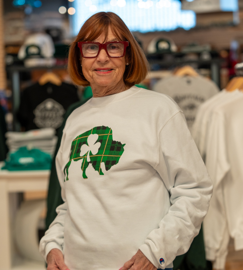 Women's Buffalo With Clovers White & Green Baby Tee