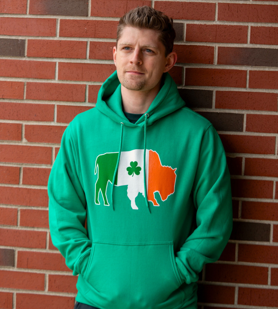 Buffalo With Irish Flag and Clover Green Hoodie