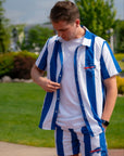 Stand out in bold, classic style with the Buffalo Bills Royal & White Nautical Stripe Button-Up Shirt. Featuring wide vertical stripes in team colors and an embroidered Bills logo on the chest pocket, this short-sleeve button-up blends clean, coastal vibes with NFL pride. Made from lightweight, breathable fabric, it's perfect for game days, summer outings, or casual fan wear.
