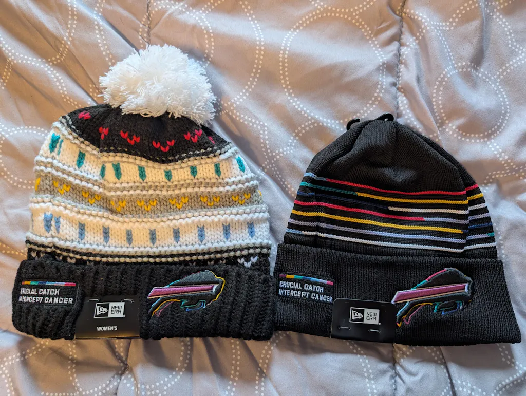 What a great stocking stuffer for any Bills fan. Shows your favorite team, while keeping you warm. Colorful, so it goes with any coat.